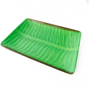 (D) จานใบตองสี่เหลี่ยมผืนผ้าใหญ่ สีเขียว