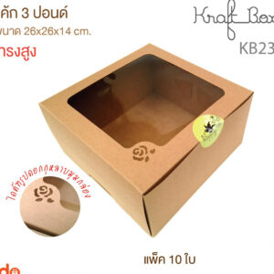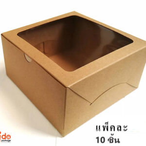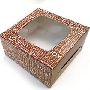 กล่องขนม Happy น้ำตาล มีหน้าต่าง 15*15*7.5 cm (1*10) PSN3S03