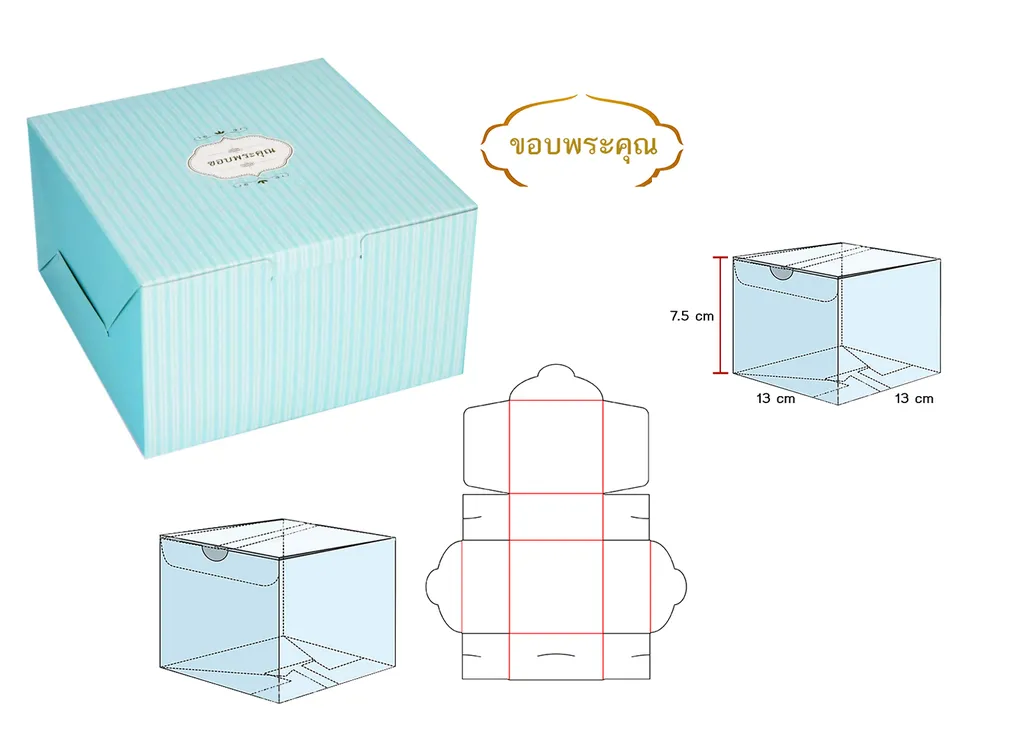 (B) กล่องขนม- ขอบพระคุณ สีฟ้า 13*13*7.5 cm. (1*10)