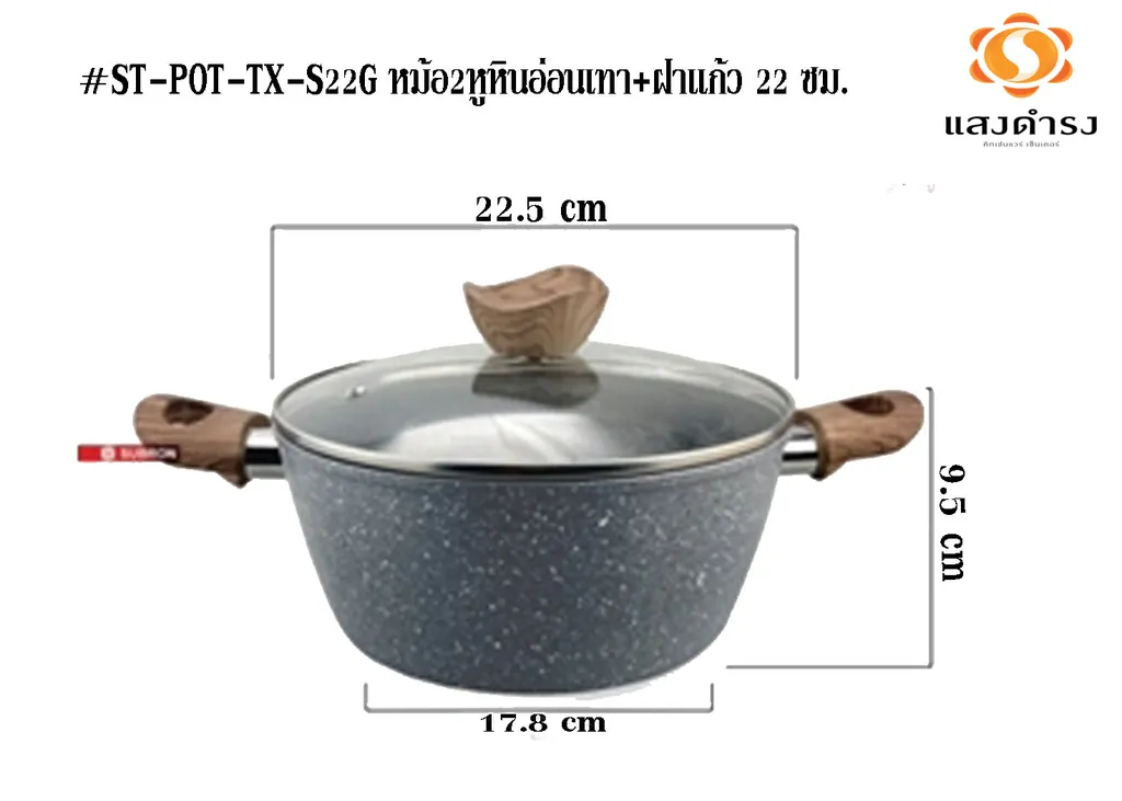 (D) หม้อ2หูหินอ่อนเทา/ครีม+ฝาแก้ว 22 ซม. #ST-POT-TX-S22G