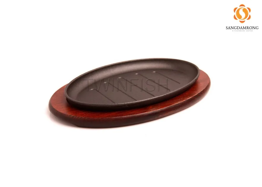 #HP-9 จานร้อนแบบวงรี+ถาดไม้ 27 ซม.