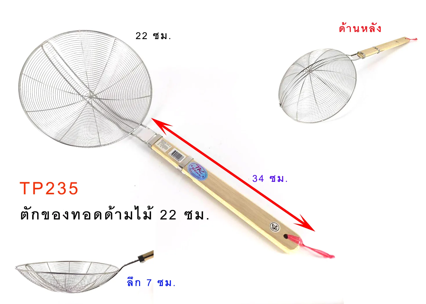 TP235 ตักของทอดด้ามไม้ 22 ซม.