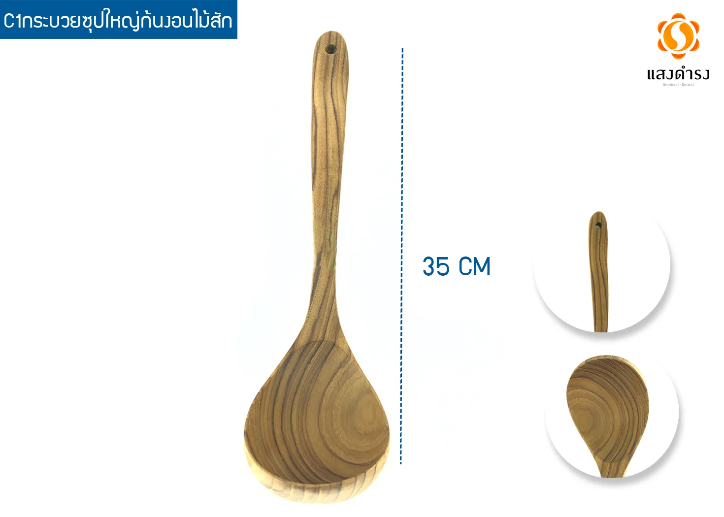 C1 กระบวยซุปใหญ่ก้นงอนไม้สัก