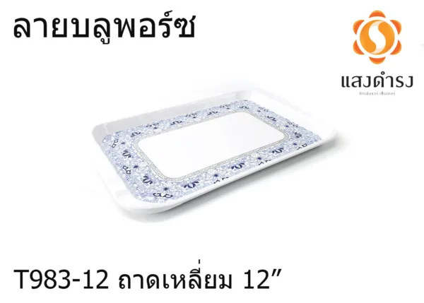T983-12 ถาดเหลี่ยม ลายบลูพอร์ซ (1X12)