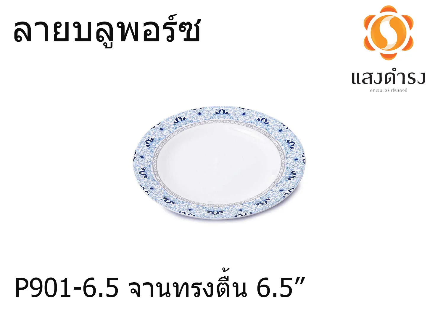P901-6.5 จานทรงตื้น ลายบลูพอร์ซ (1X12)