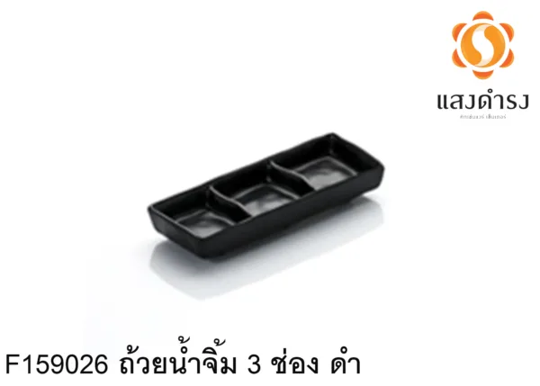 F159026 ถ้วยน้ำจิ้ม 3 ช่อง ดำ 18.1×6.8cm.