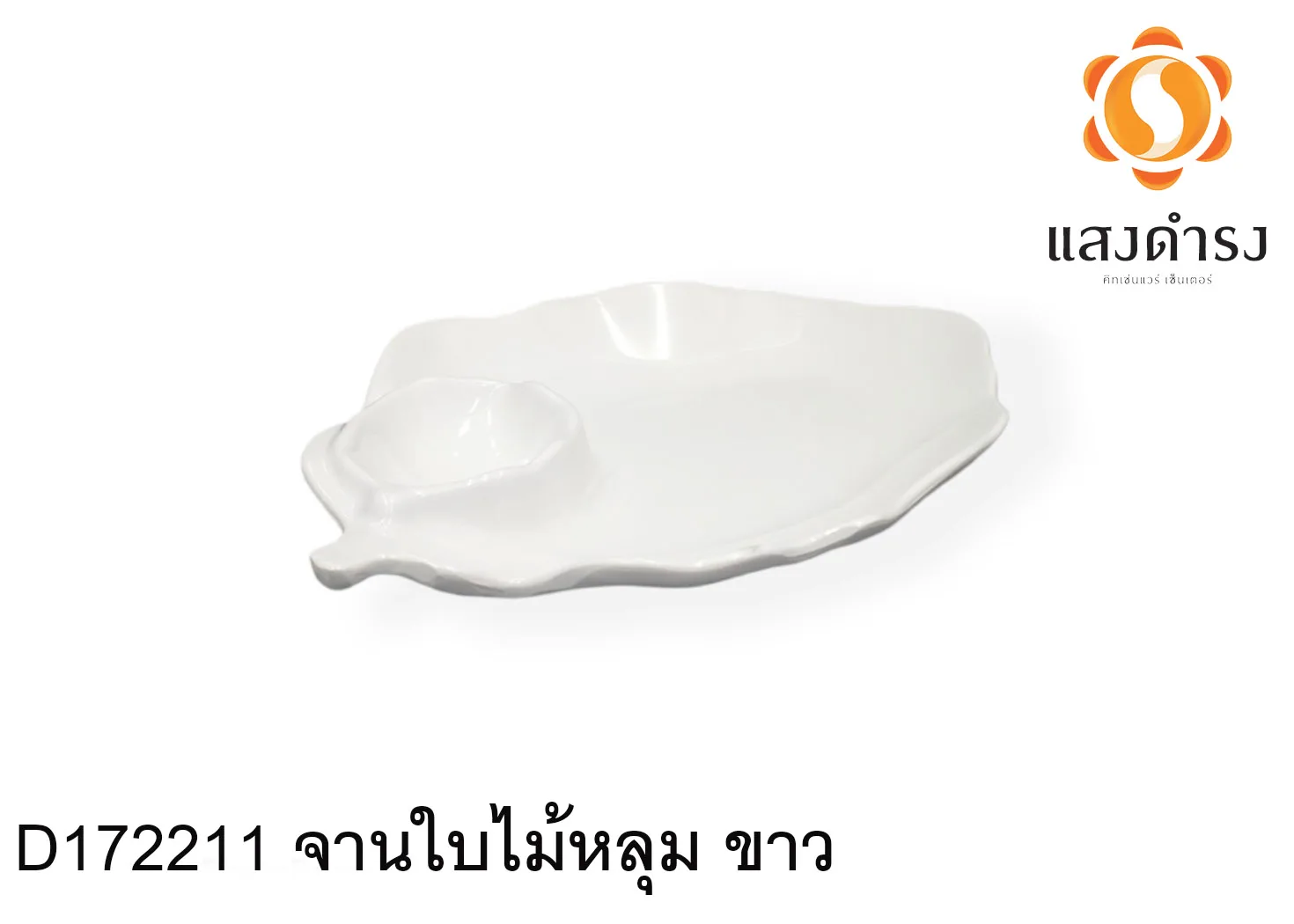 D172211 จานใบไม้หลุม ขาว 28x19cm.