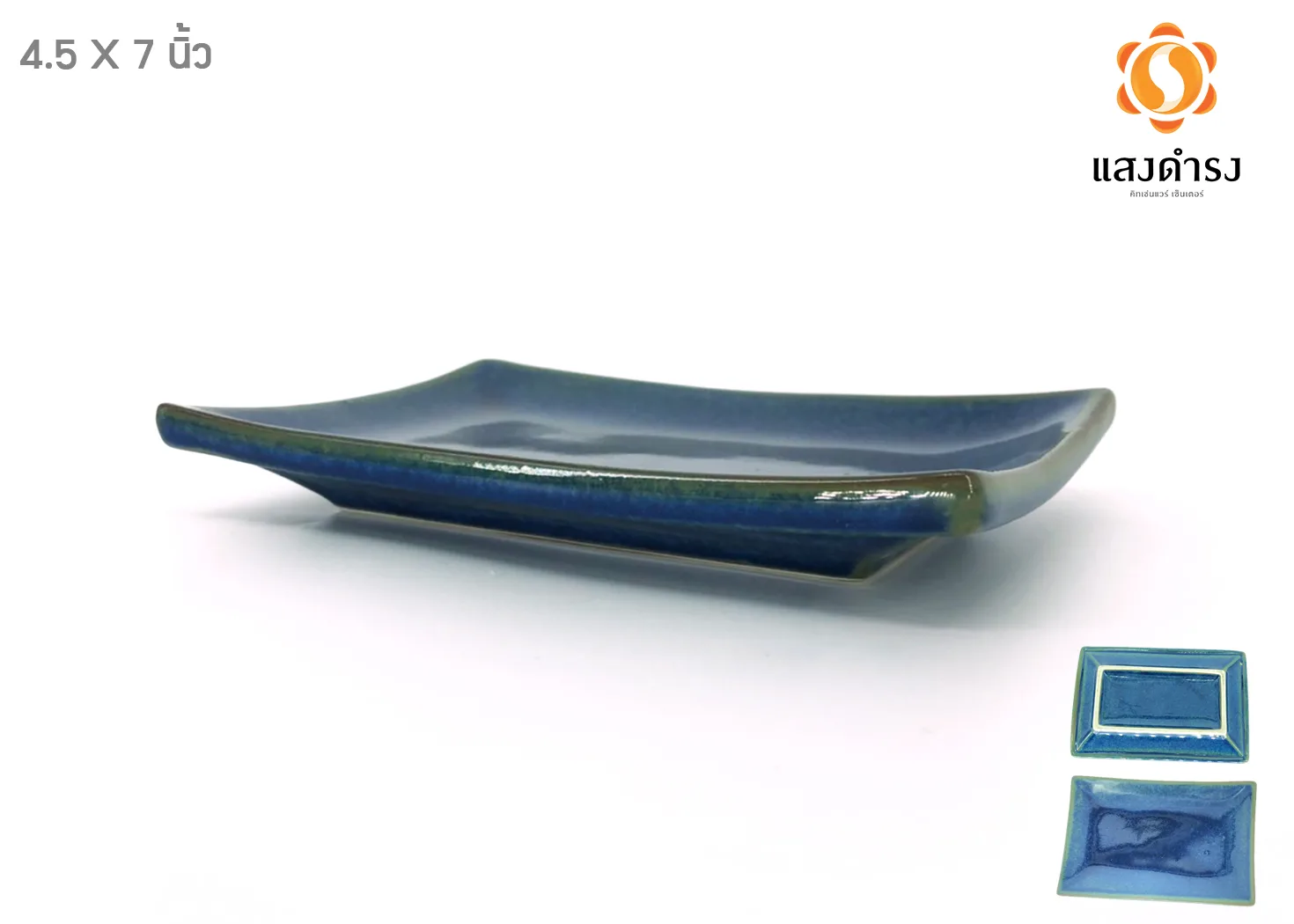 จานเปลเหลี่ยม 4.5″x7″ สีผลึกน้ำเงิน