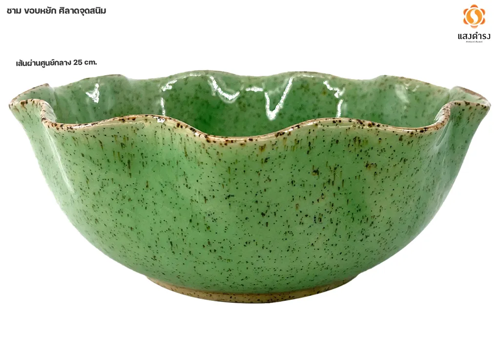 ชาม 10" ขอบหยัก สีเขียวศิลาดลจุดสนิม