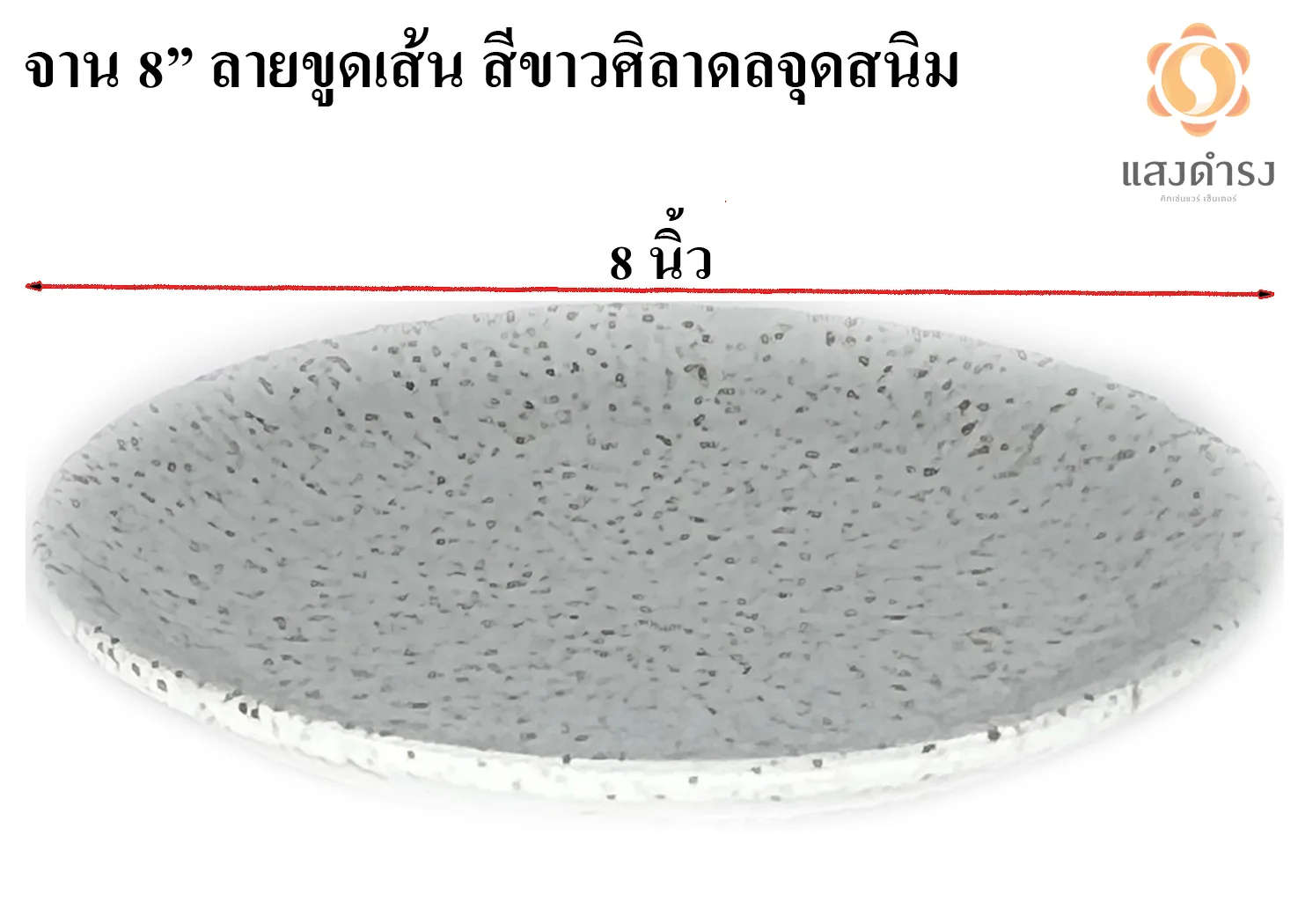 จาน 8″ ลายขูดเส้น สีขาวศิลาดลจุดสนิม