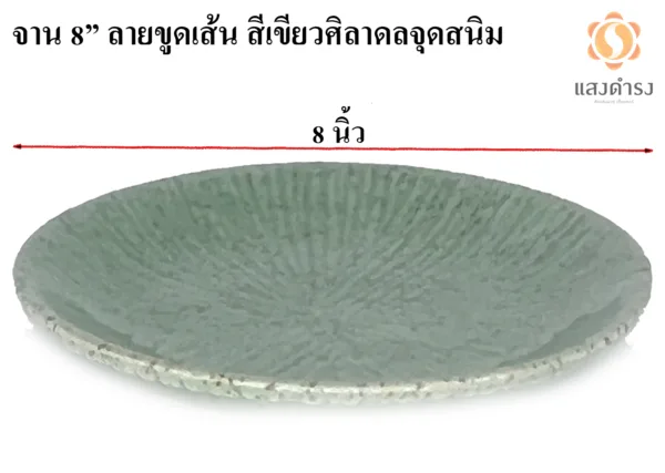 จาน 8″ ลายขูดเส้น สีเขียวศิลาดลจุดสนิม
