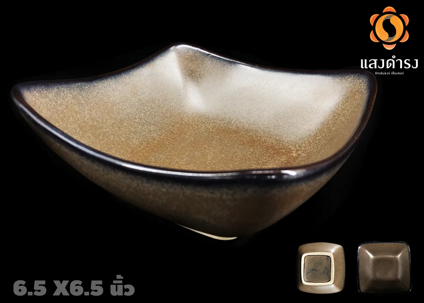 จานสี่เหลี่ม 6.5*6.5″ ทรงสูง สีน้ำตาลเคลือบทอง