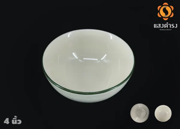 ถ้วยกลม 4″ ครีม ขอบเขียว