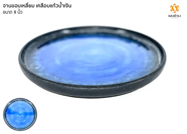 จานff ขอบเรียบ 8″ เคลือบแก้วน้ำเงิน (เบอร์3)