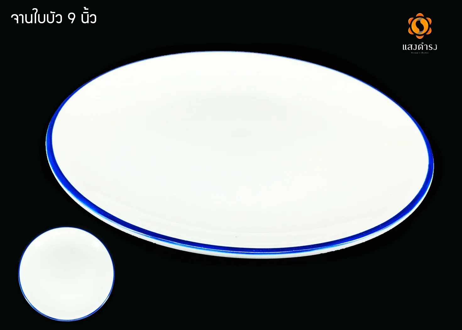 จานใบบัวตื้น 9″ วนน้ำเงิน 02102090-1 (1×45)