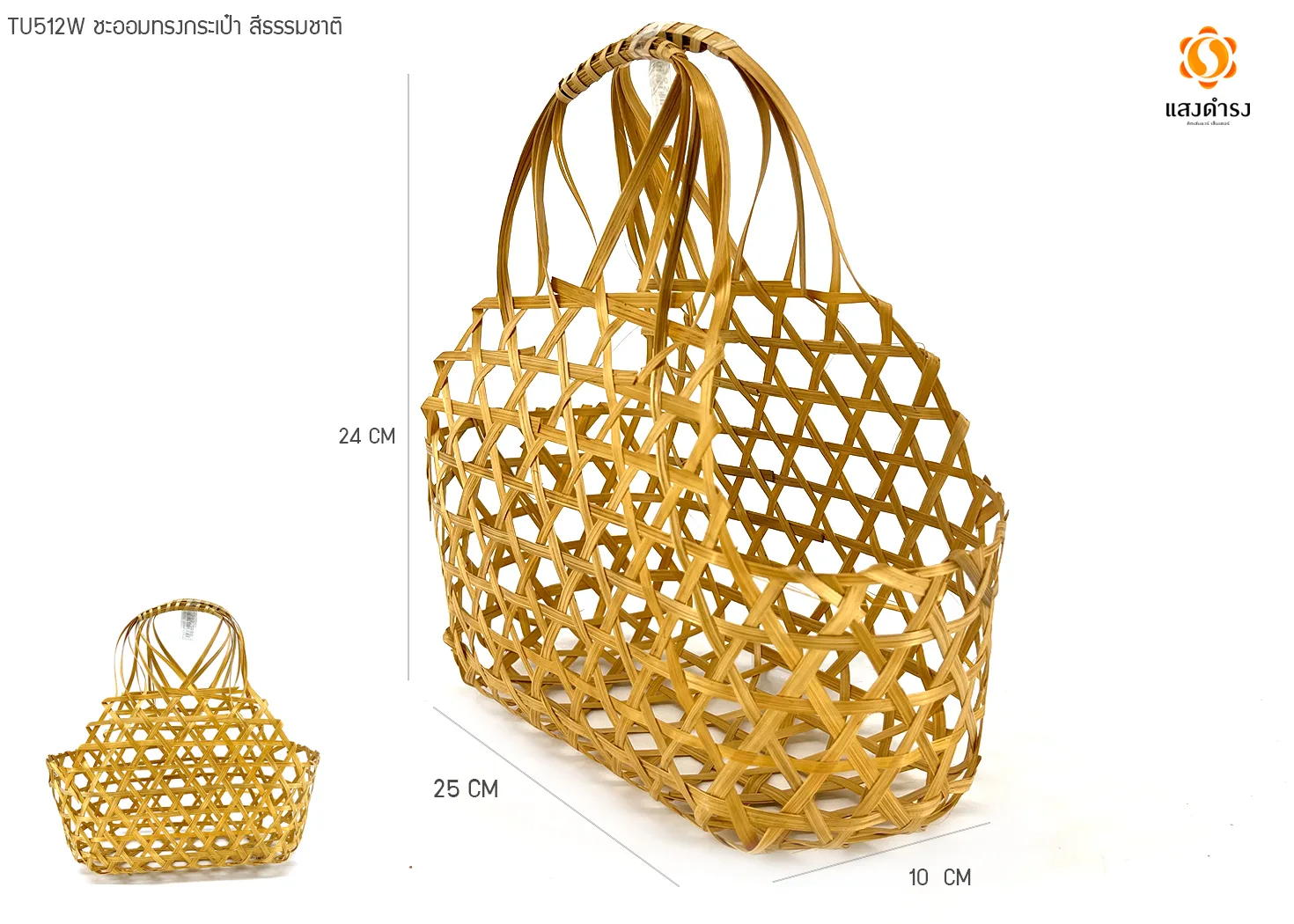 TU5212W ชะลอมทรงกระเป๋า สีธรรมชาติ (L25*W12*H10/24 ซม.)