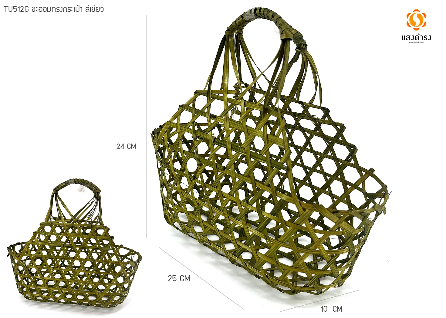 (D) TU5212G ชะลอมทรงกระเป๋า สีเขียว (L25*W12*H10/24 ซม.)