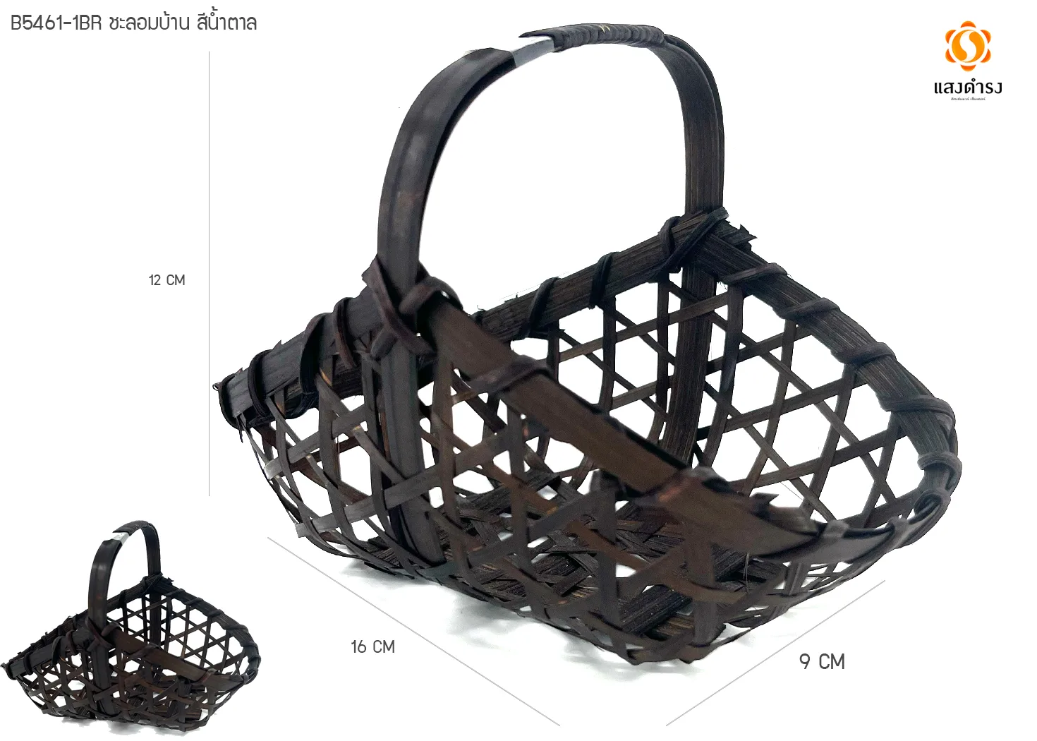 B5461-1BR ชะลอมบ้าน สีน้ำตาล (L16*W10*H4/9/12 ซม.)