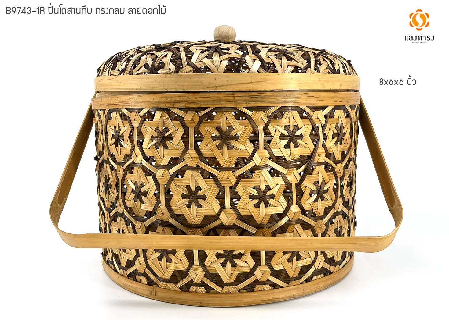 B9743-1BR ปิ่นโตสานทึบ ทรงกลม ลายดอกไม้ (8″*6″*6″)