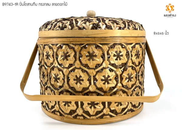 B9743-1BR ปิ่นโตสานทึบ ทรงกลม ลายดอกไม้ (8″*6″*6″)