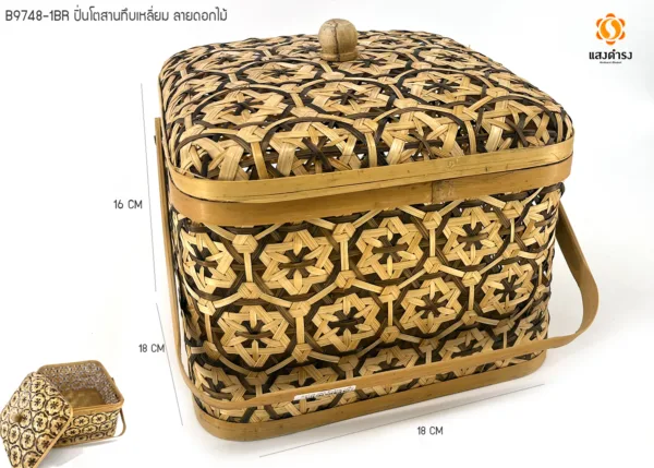 B9748-1BR ปิ่นโตสานทึบ ทรงเหลี่ยม ลายดอกไม้ (8″*6″*6″)