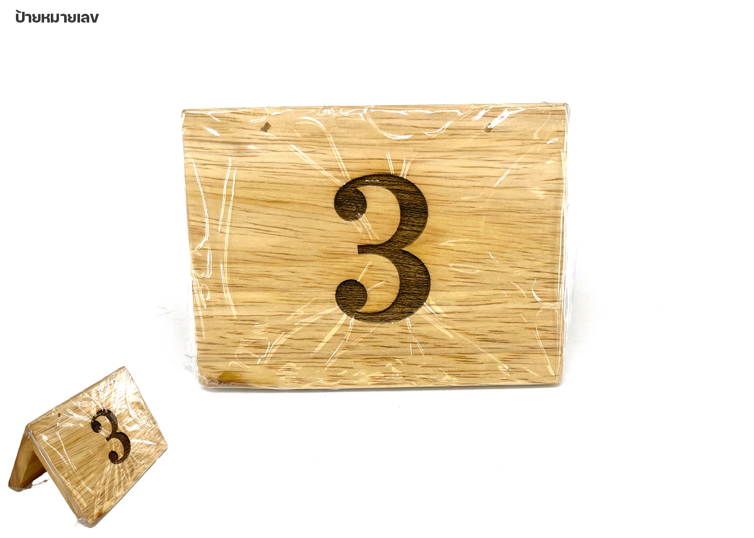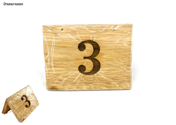 ป้ายตั้งโต๊ะไม้ เบอร์3 (8x10x8 ซม.)