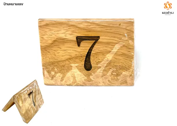ป้ายตั้งโต๊ะไม้ เบอร์7 (8x10x8 ซม.)