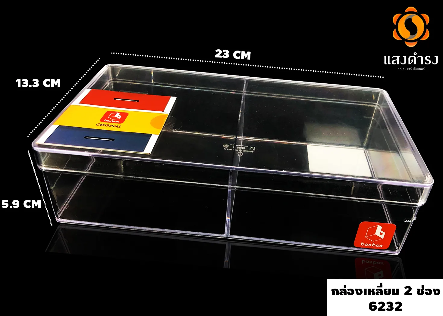 กล่องเหลี่ยมใส2ช่อง 6232 (13.5*23*5.9 ซม.)