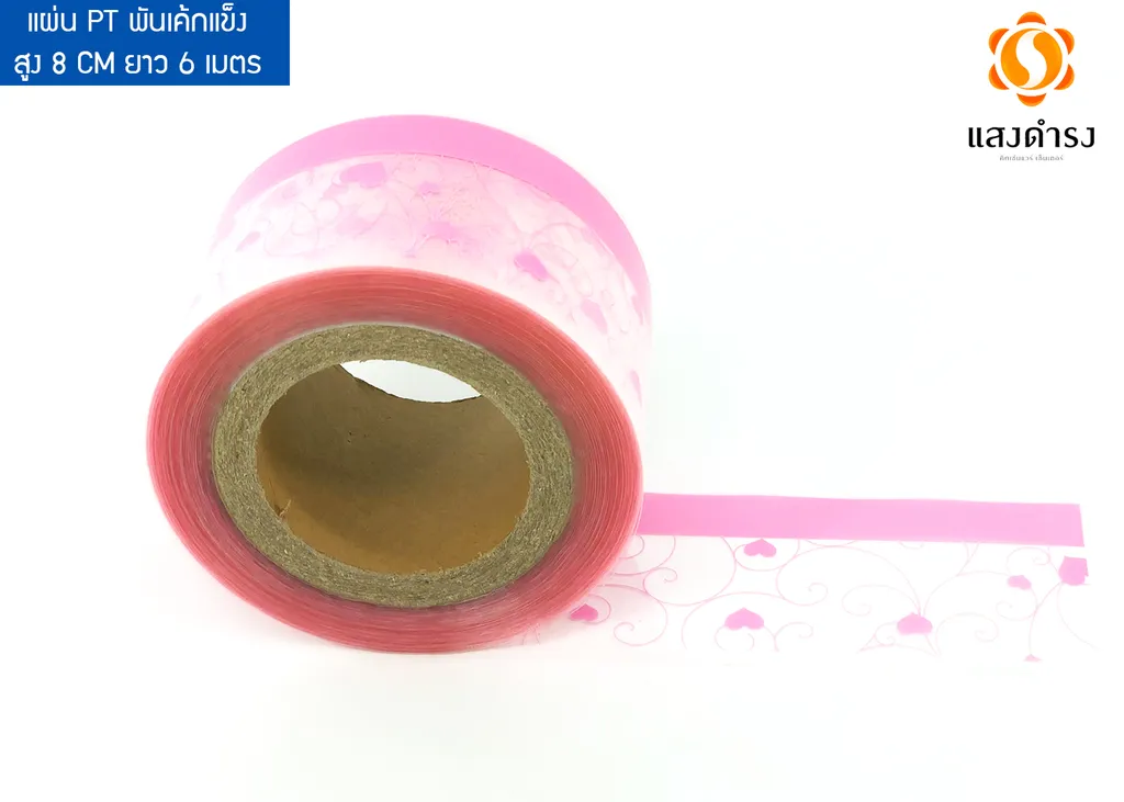 แผ่น PT พันเค้กแข็ง สูง 8cm.*6 เมตร ลายหัวใจชมพู/ตาล