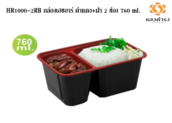 HR1000-2RB กล่องเฮชอาร์ ดำแดง+ฝา 2 ช่อง 760 ml. (1*25*20)