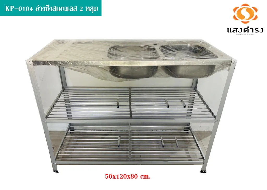 (D) KP-0104 อ่างซึ้งสเตนเลส 2 หลุม 50x120x80 ซม.