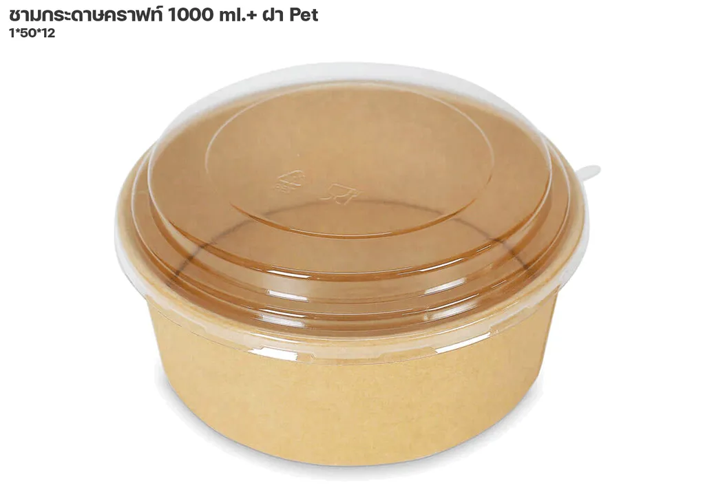 (D) ชามกระดาษคราฟท์ 1000 ml.+ ฝา Pet 1*50*12